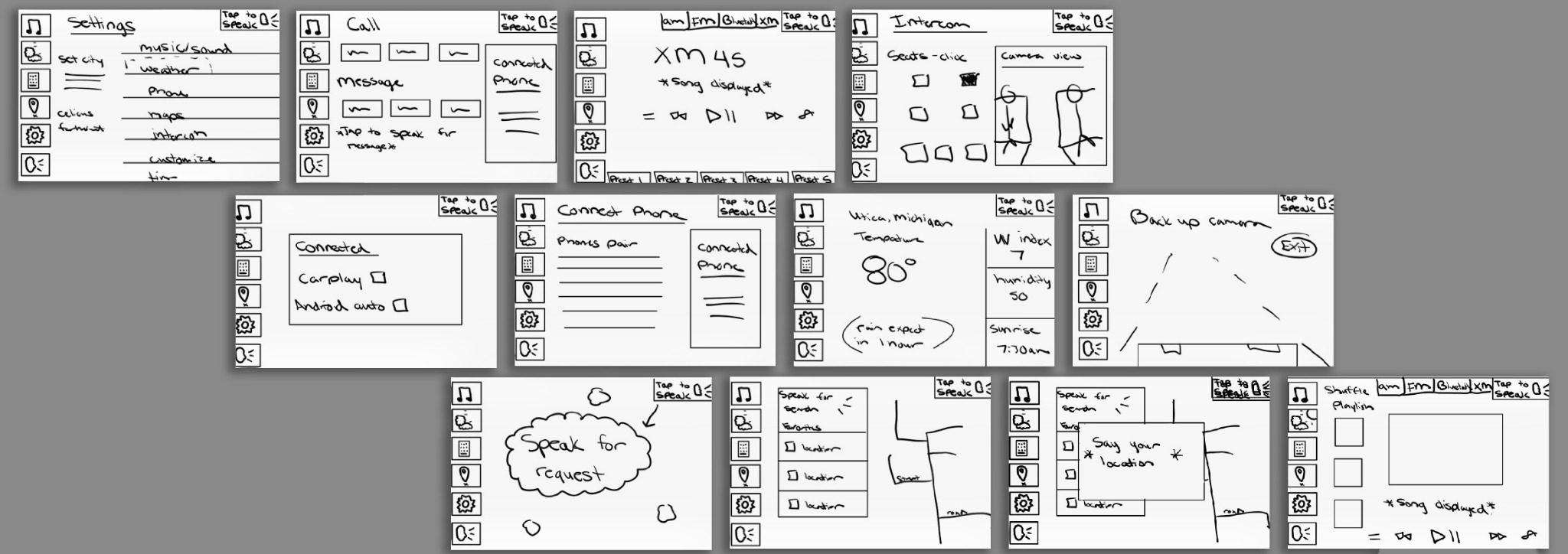 This foundation shaped all later phases of interviews, sketches, low-fidelity sketches, and usability tests were all aligned to one question: Does this layout make it faster and easier to perform core tasks without pulling too much attention off the road?