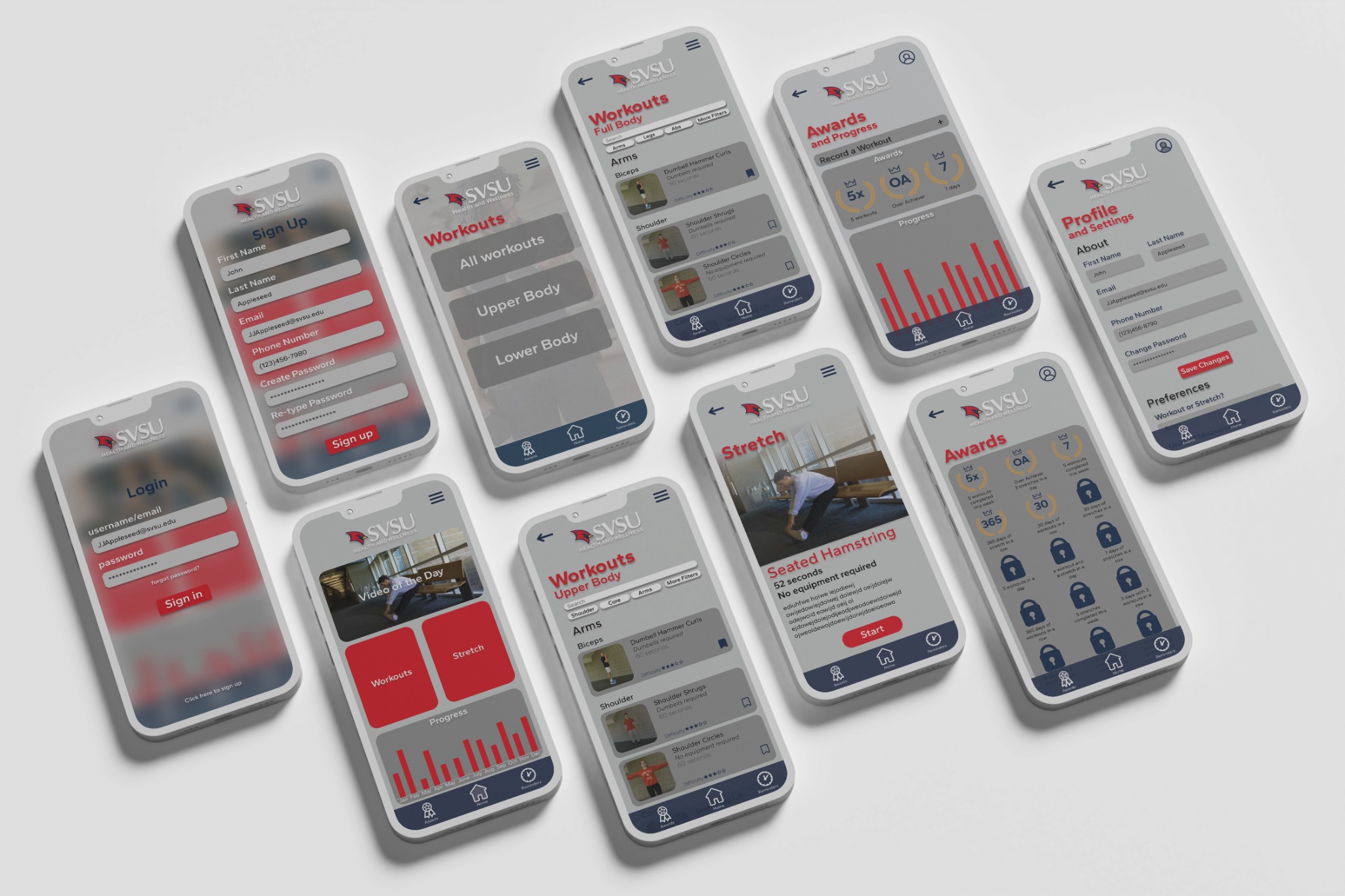 The SVSU Health & Wellness App brings together fitness resources, reminders, and gamified progress tracking in one mobile hub. Partnering with the Kinesiology Department, I led research, wireframing, prototyping, and usability tests to deliver a student-centric experience that makes building healthy habits simple and fun.